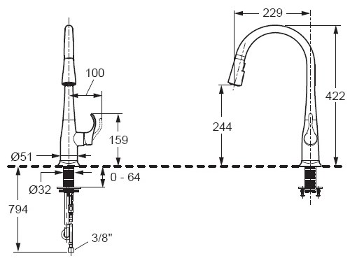 Высота излива: 227 мм