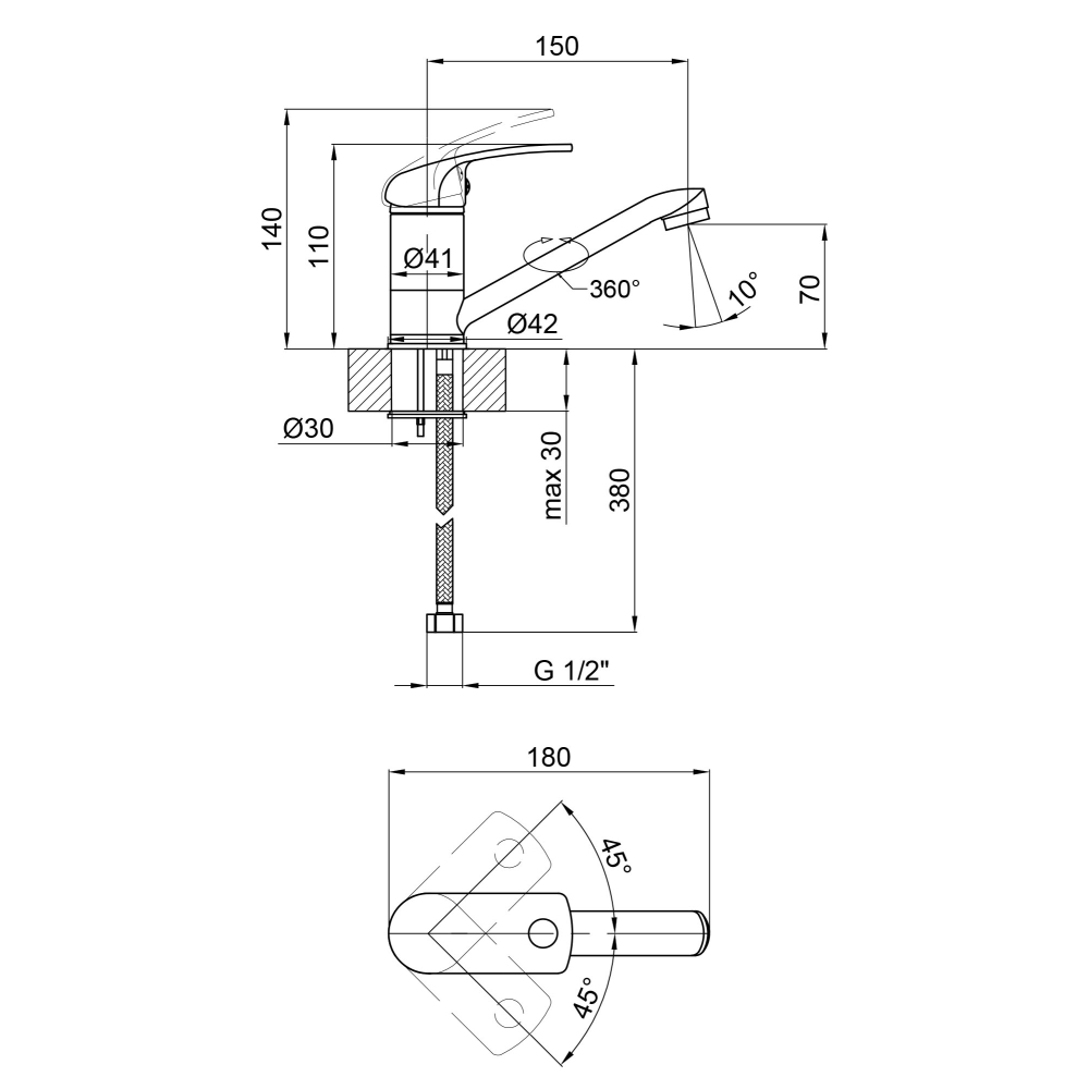 • Высота излива, мм:70