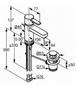 • Смеситель:Для умывальника