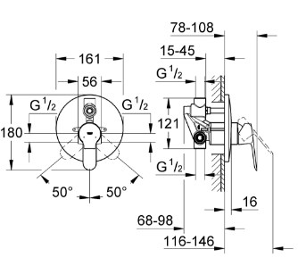 Добавить отзыв о «Смеситель для ванны встраиваемый Grohe BauEdge хром 29079000»