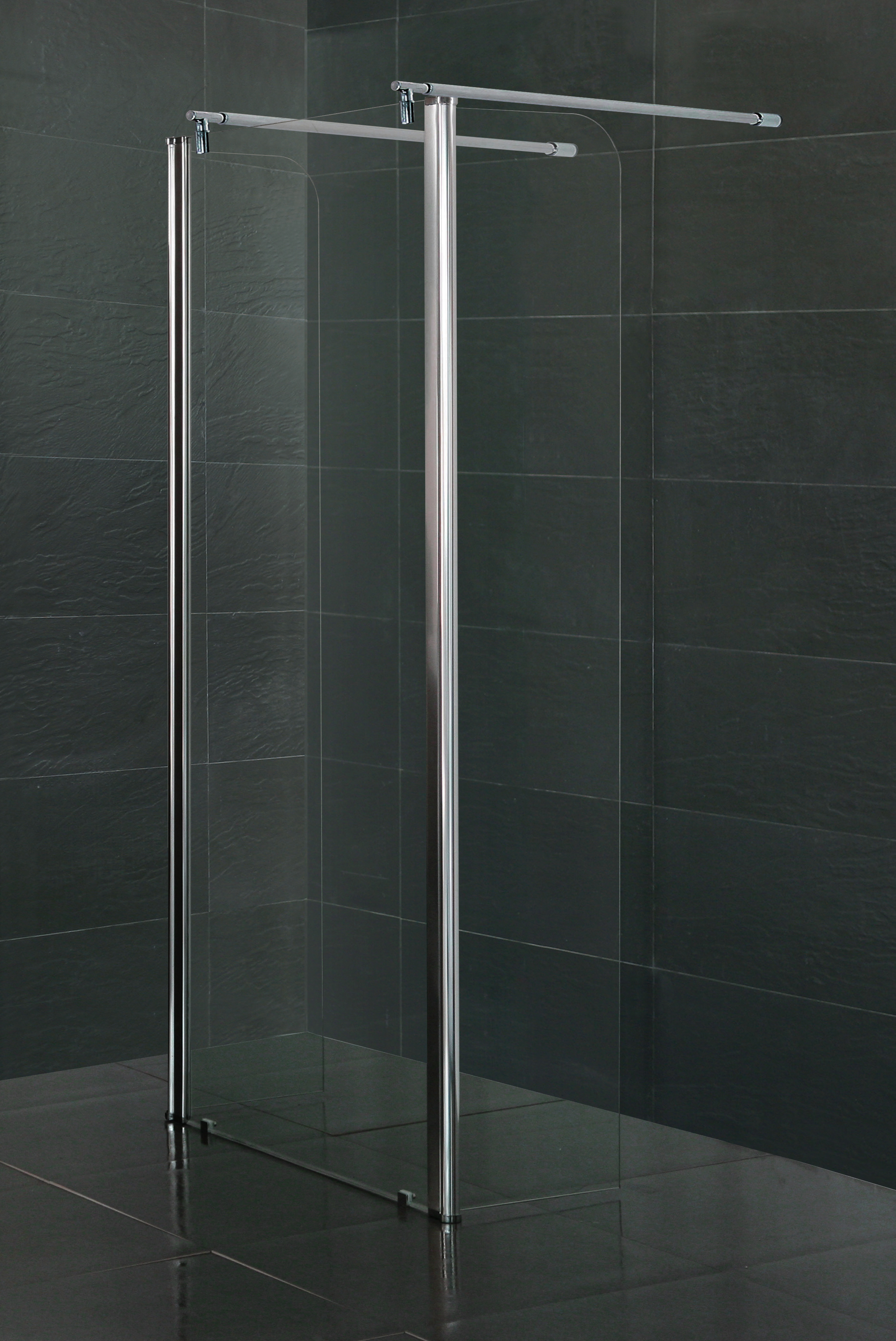 Стенка c подвижным профилем 350*1900 мм, каленое прозрачное стекло 8 мм, профиль хром.