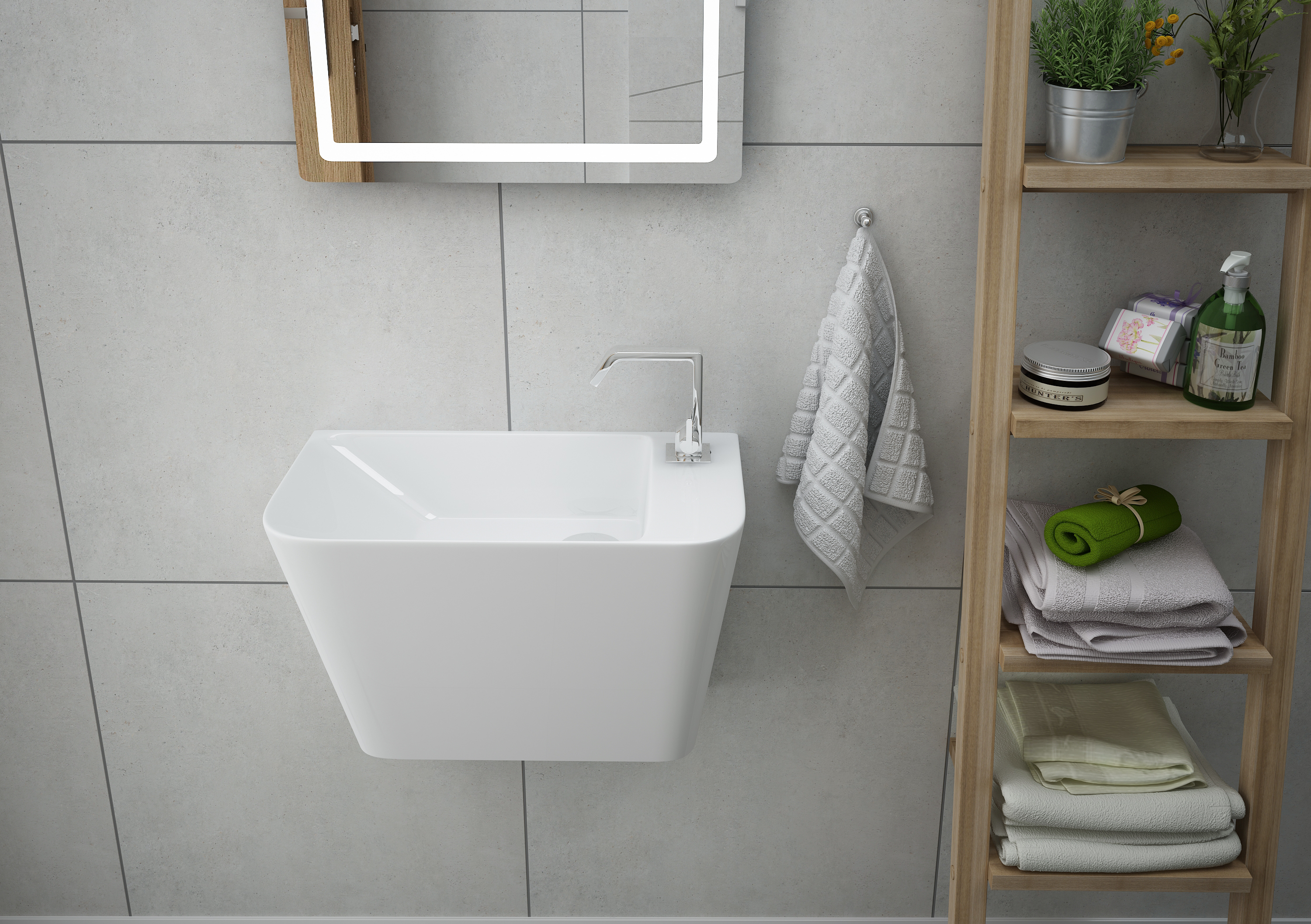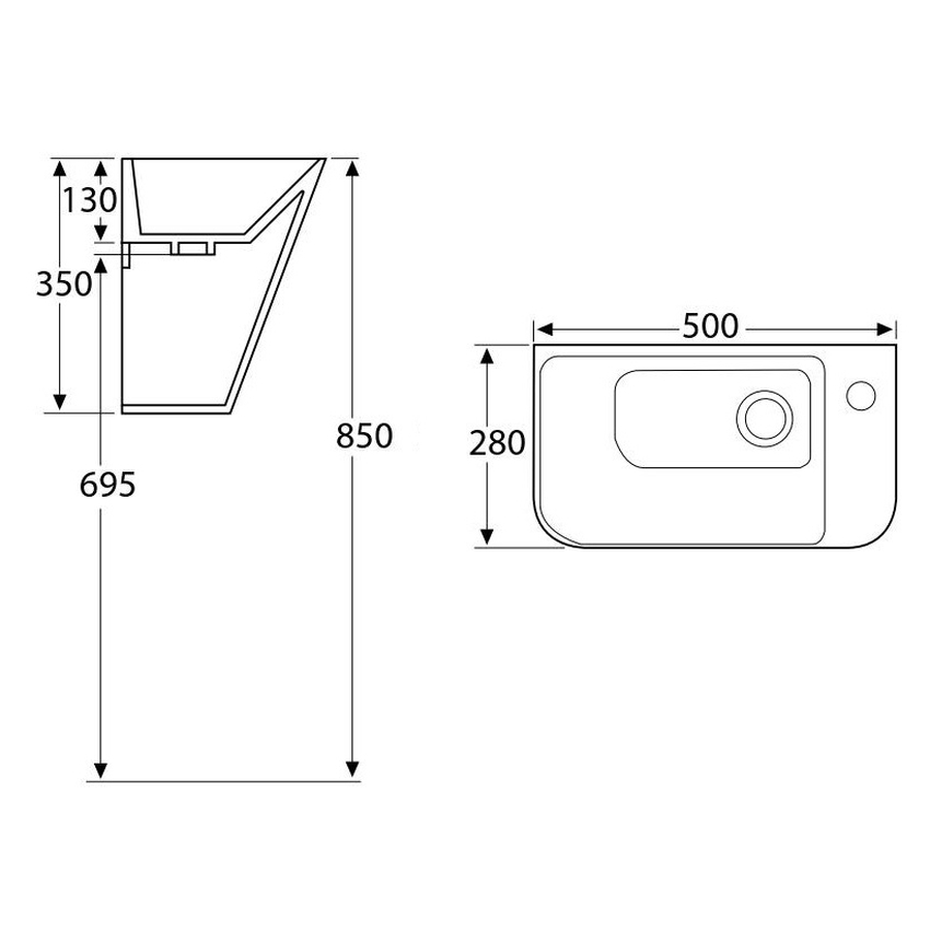 Добавить отзыв о «TEO умывальник 50*28*35см моноблок подвесной»