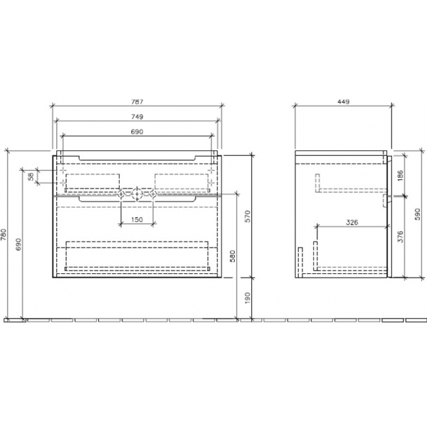 Тумба для раковины Villeroy&Boch Subway 2.0 787x590x449 мм дуб графитовый A91410FQ