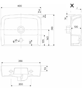 Умывальник мебельный Kolo Rekord 40 см, с отверстием Глубина 31 см Ширина 40 см Вес 8.5 кг Размер 50 см