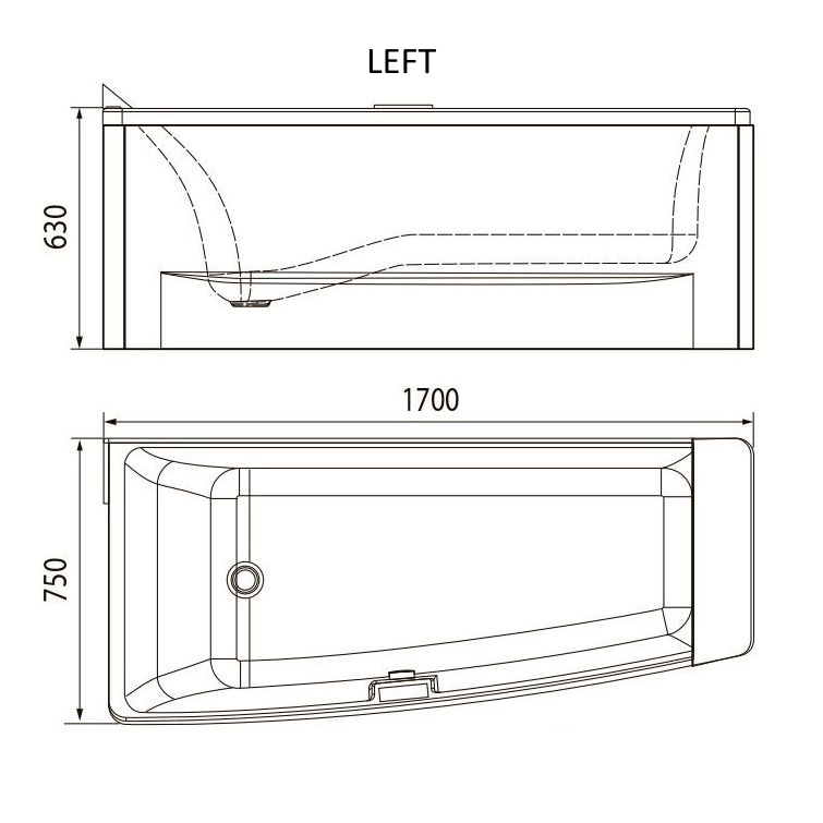 • Размеры (ДxШxВ) - 1700x750x630 мм, ширина борта под смеситель 10 см