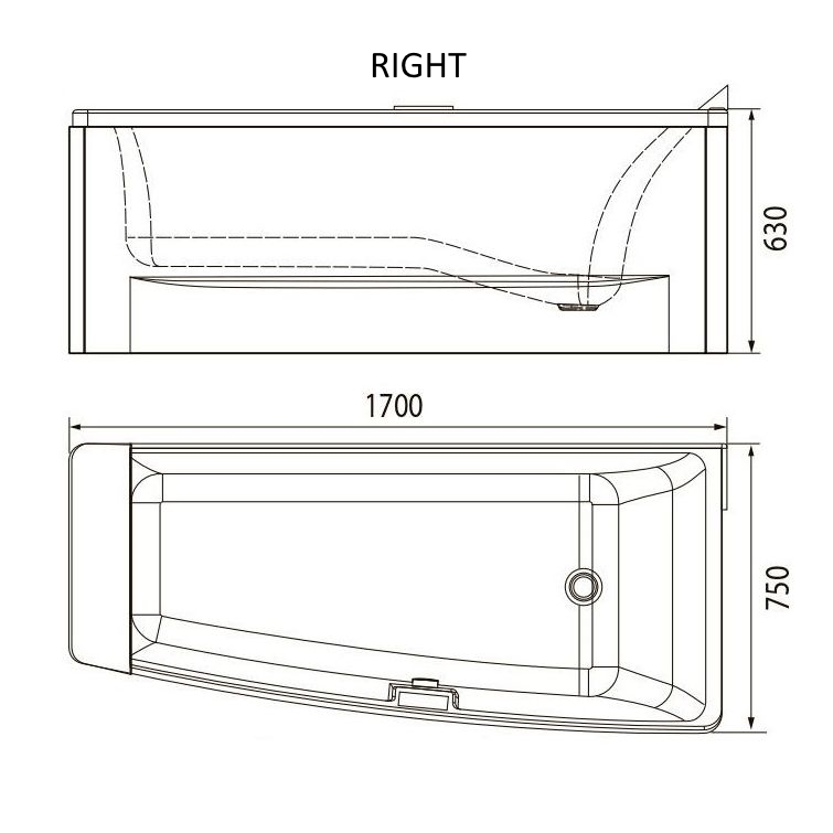 Добавить отзыв о «Ванна 170*75*63см асимметричная, правая, без гидромассажа»