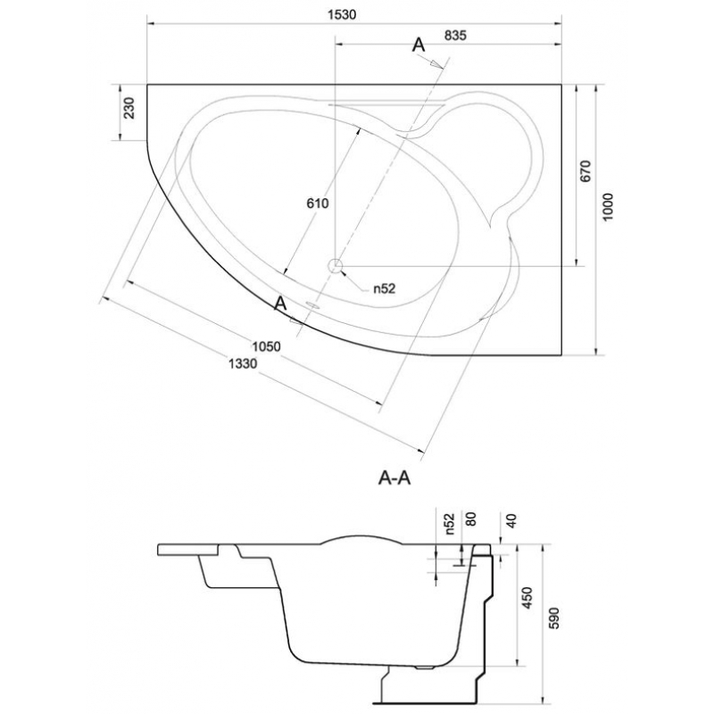 • Форма ванны:Угловая
