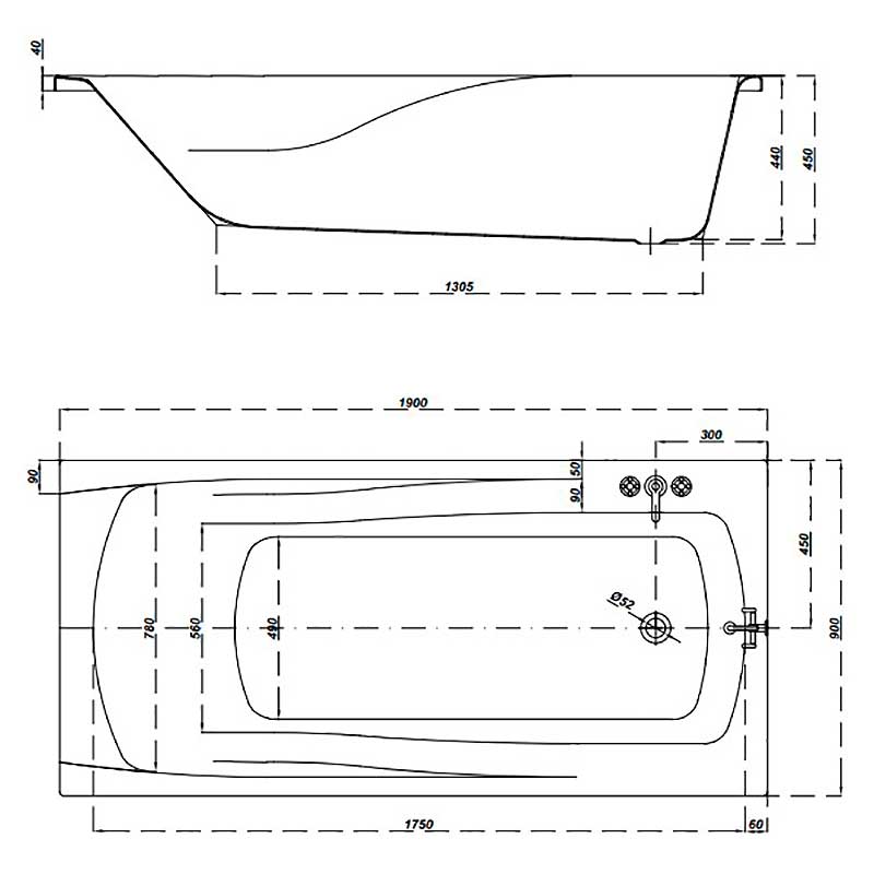 • Форма ванны:Прямоугольная
