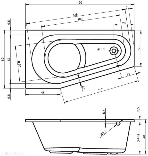 Добавить отзыв о «Ванна акриловая Riho Delta 150х80 R BB80»