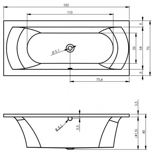 Форма ванны - прямоугольная