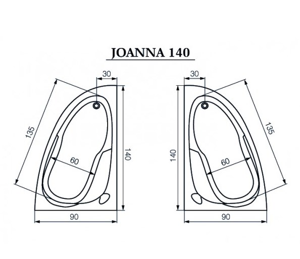 Длина ванны: 140 см