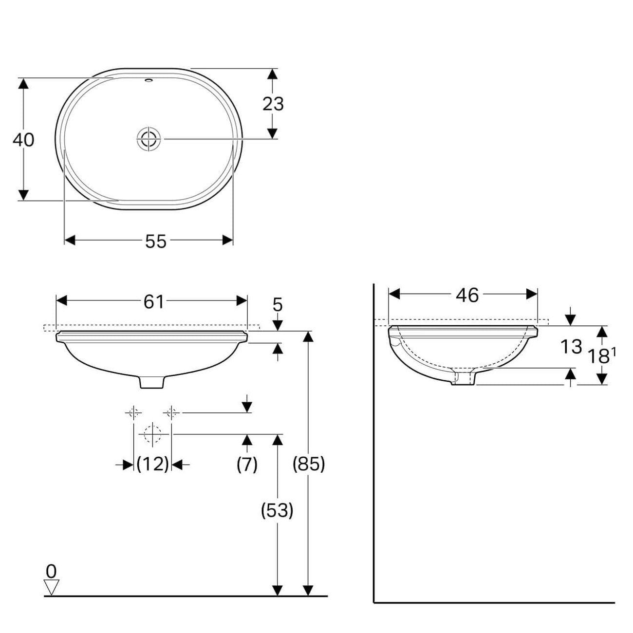 Добавить отзыв о «VARIFORM умывальник встраиваемый под столешницу, эллиптический, 55*40см, без отверстия, с переливом»