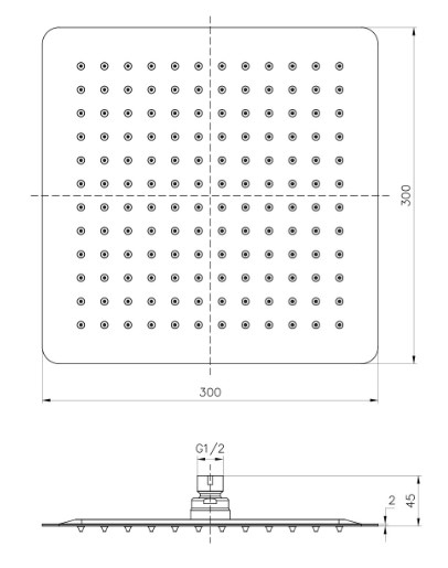 Верхний душ Imprese Slim SQ300SS2 хром Длина: 300 мм Ширина: 300 мм Высота: 2 мм Производитель Imprese Страна: Чехия Назначение: верхний душ Тип монтажа: наружный настенный Цвет: хром Материал: нержавеющая сталь