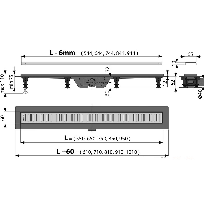 Добавить отзыв о «Водоотводящий желоб с решеткой AlcaPlast Simple APZ10-950M (950 мм)»