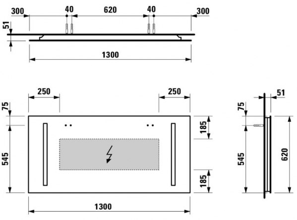 Зеркало Laufen Palace New 130 см H4472729961441 Форма: прямоугольная С подсветкой 2х14 Вт, IP44 Размеры (ШхВ): 1300 x 620 мм Вес: 14,4 кг