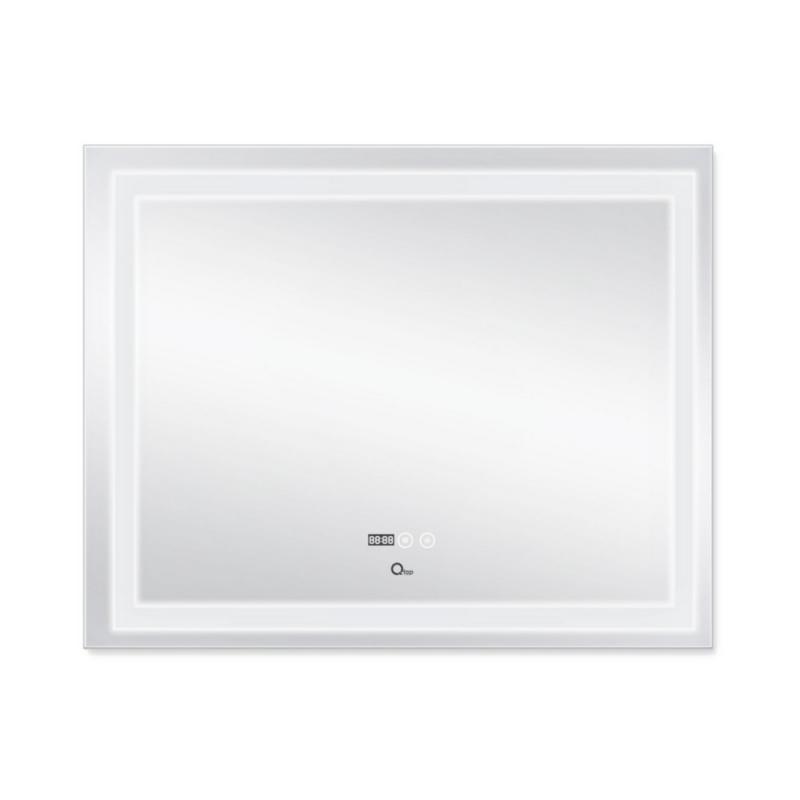 Зеркало Qtap Mideya с антизапотеванием (DC-F614) 1000x800 QT2078F614W укомплектовано светодиодной лентой с ровным, насыщенным, ярким свечением белого цвета, которое не вредит зрению, и двумя сенсорными кнопками для подсветки и функции антизапотевания на передней части зеркала. LED-подсветка по краям в виде прямоугольников идеальна для проведения бритья или косметических процедур. К преимуществам также можно отнести такие немаловажные факторы, как низкое энергопотребление и легкий монтаж: зеркало